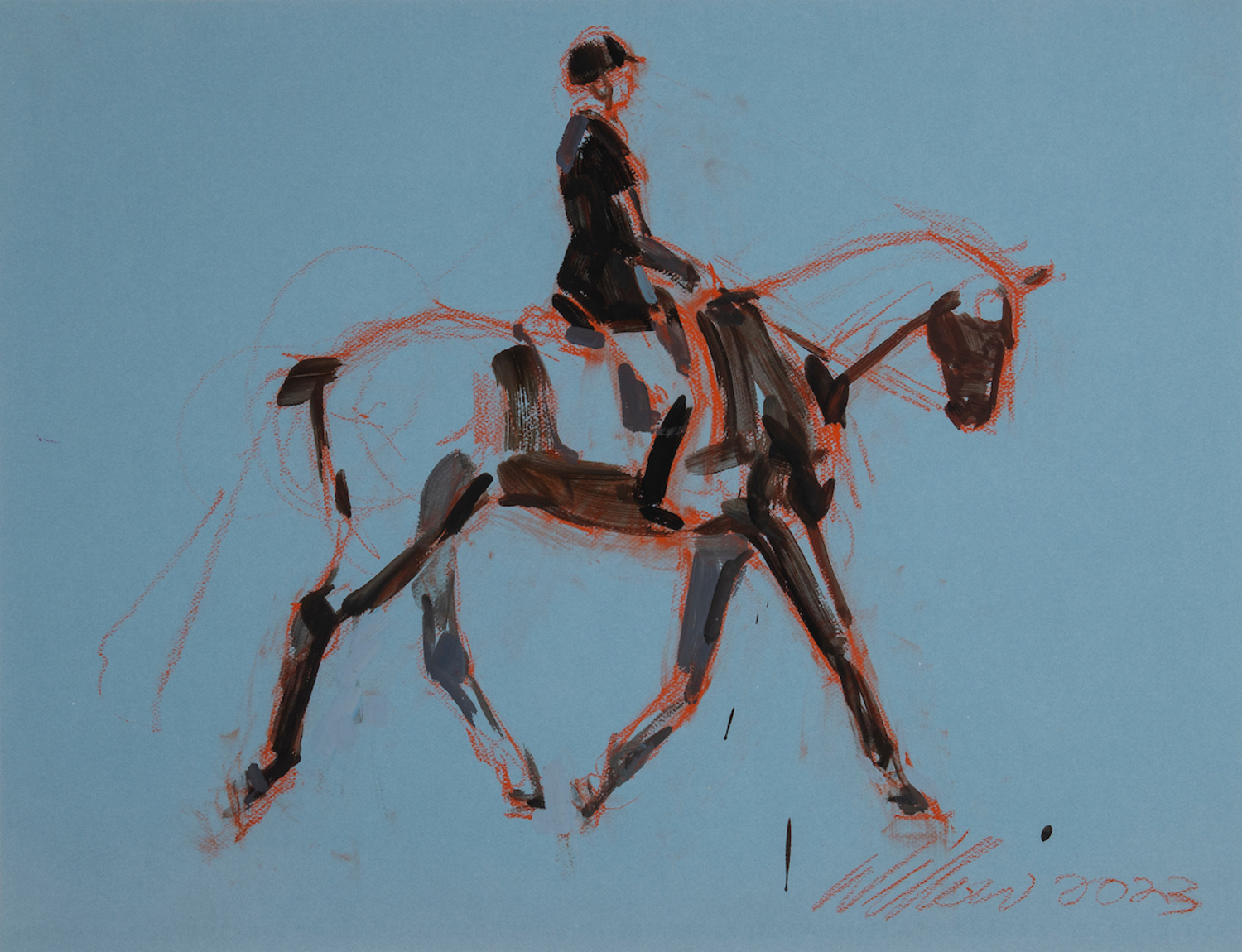 Willow BaderHorse and rider on blueEncaustic and mixed media on paper25.5 x 19.7 inches$995.00
